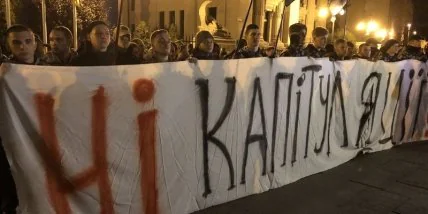 Участники акции протеста уверены, что согласование Украиной "формулы Штайнмайера" - это путь к капитуляции.