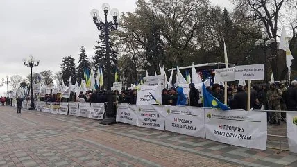 Это первая из трех акций против рынка земли, которые запланированы у здания парламента. Свои протесты также проведет Ассоциация животноводов Украины и Всеукраинское объединение "Свобода".