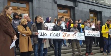 Как передает корреспондент, сейчас возле офиса главы государства на улице Банковой проходит акция "Делам Майдана - труба?" с участием пострадавших, родственников погибших на Майдане, адвокатов и общественных активистов. Также на нее пришел бывший начальник Управления спецрасследований Генеральной прокуратуры Сергей Горбатюк.