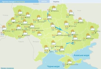 Прогноз погоды на субботу, 16 ноября, в городах Украины: