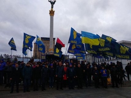 Лидер "Свободы" Олег Тягнибок заявил, что активисты пришли к Офису президента требовать ответов на свои обращения, переданные в ОП 14 октября во время акций, посвященных Дню создания Украинской повстанческой армии.