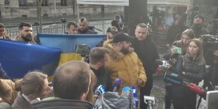 "Мы приехали сюда, чтобы выразить беспокойство, ведь чувствуем опасность по поводу того, что будет происходить во время нормандских переговоров. Мы хотим донести всему миру позицию украинцев, которая заключается в нескольких очень простых пунктах", - заявил бывший командир полка "Азов" Максим Жорин.