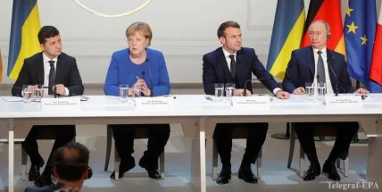 9 декабря, лидеры стран "нормандской четверки" – президент Украины Владимир Зеленский, президент Франции Эммануэль Макрон, канцлер Германии Ангела Меркель и глава России Владимир Путин провели встречу в Париже.