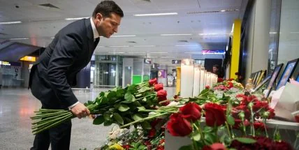 "После завершения рабочего совещания по вопросам, связанным с катастрофой украинского самолета авиакомпании МАУ в Тегеране, Владимир Зеленский отправился в аэропорт "Борисполь", чтобы почтить память жертв трагедии. Там президент возложил цветы к фотографиям погибших", - отмечается в сообщении.Оперативный штаб представил отчет президенту о ходе расследования причин крушения украинского самолета Boeing 737. На рабочем совещании президента, премьера, секретаря СНБО, министров обороны и иностранных дел решили, что не стоит манипулировать информацией об аварии Boeing 737, пока специалисты не исследуют обстоятельства трагедии.