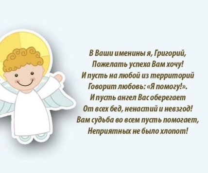 От души поздравляю тебя, Григорий. Желаю всегда оставаться сильным, уверенным, мудрым, рассудительным, смелым, интересным, крепким, целеустремлённым и успешным. Пусть твой богатый внутренний мир и твои мечты открывают перед тобой новые горизонты увлечений и побед. Здоровья тебе, удачи, любви и грандиозных событий в жизни!