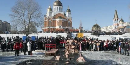 Кроме того, 19 января у верующих принято окунаться в ледяную воду с головой. Перед погружением в прорубь нужно три раза перекреститься и окунуться со словами: "Во имя Отца и Сына, и Святого Духа".