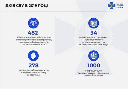 По информации ведомства, по материалам СБУ 34 сепаратистские администраторы соцсетей были привлечены к ответственности за распространение антиукраинской пропаганды, вступил в законную силу 21 судебный приговор. Почти 280 иностранцам, причастным к пропаганде сепаратизма в интернете, запрещен въезд в Украину.