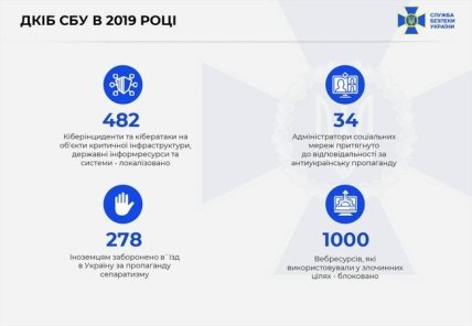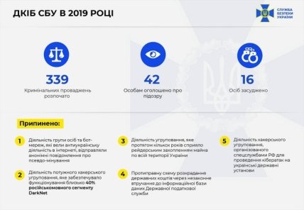 "В 2019 году специалисты СБУ по информационной безопасности нейтрализовали свыше 480 киберинцидентов и кибератак на органы государственной власти и объекты критической инфраструктуры", - говорится в сообщении.