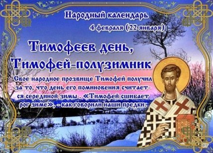 Тимофей-полузимник, студеную зиму пополам разрубает.