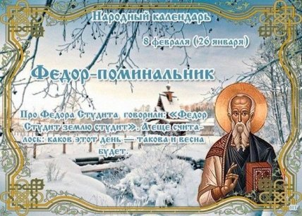 Также, согласно православному молитвослову, 8 февраля почитали память Святого Федора Студита – греческого общественного деятеля и монаха, которого впоследствии церковнослужители причислили к лику святых.