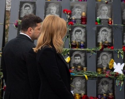 Глава украинского государства Владимир Зеленский с супругой Еленой поучаствовали в церемонии чествования памяти Героев Небесной сотни в день их памяти.