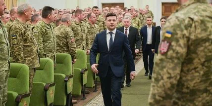 Зеленский напомнил, что подписал принятый Верховной Радой в декабре 2019 года закон, предоставляющий добровольцам статус участников боевых действий, и отметил, что первые добровольцы уже получили удостоверения.