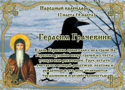 Церковный праздник в честь преподобного Герасима совпал с прилетом грачей – одним из первых признаков наступления весны.