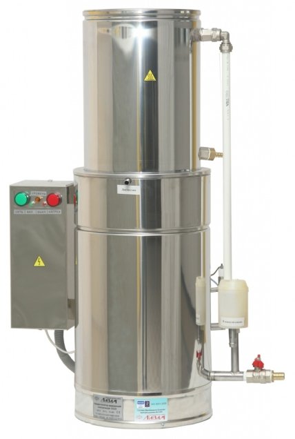 - Дистилляторы с высоким уровнем производительности перерабатывают в течение часа до 25 литров жидкости. Оборудование актуально для лабораторий, клиник и аптек.