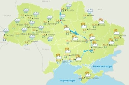 Температура ночью 0-5° тепла, в западных областях местами 1-3° мороза, днем 11-16° тепла; в Карпатах ночью ночью 1-6° мороза, днем 3-8° тепла.