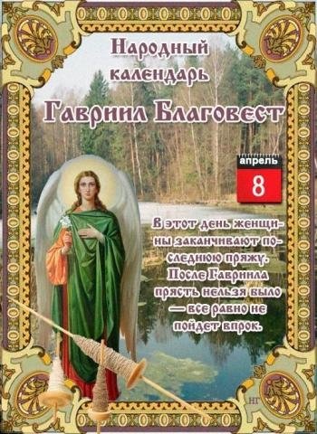 Также в этот день женщины заканчивают последнюю пряжу. После Гавриила прясть нельзя было — все равно не пойдет впрок. Причина такого суеверия, очевидно, в том, что весной у женщин много неотложных дел в поле и в огороде, и не стоит тратить время на домашнюю работу. Не зря говорят: "Весной день долог, а нитка коротка". Это означает, что пряха просто не успеет спрясть ее до начала страды.
