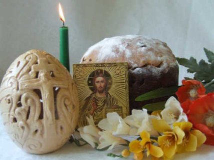 В этот светлый день принято христосоваться — поздравлять близких, трижды целоваться и обмениваться крашеными яйцами, символизирующими жизнь и воскрешение.