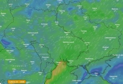 Ветер юго-западный с переходом в западной части на северо-западный, 7-12 м/с, днем в Украине, кроме северных и восточных областей, порывы 15-20 м/с.