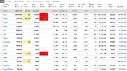 Рекордное количество заражений и случаев смерти инфицированных COVID-19 приходится на США. Там с начала вспышки коронавируса выявлено свыше 1,5 млн заражений, причем более 93 тыс. скончались.