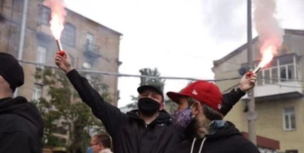 Активисты Нацкорпуса устроили пикет под стенами киевского офиса "Оппозиционной платформы – За жизнь". Главные требования – расследовать антиукраинскую деятельность членов партии ОПЗЖ и, в частности, регулярные встречи Виктора Медведчука с чиновниками страны-агрессора.