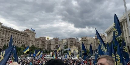 Как передает корреспондент агентства "Интерфакс-Украина", на Майдане Независимости собралось около тысячи человек с национальной символикой и флагами политических партий "Национальный корпус", "Демократическая секира" и общественной организации "Дело громад", которые и выступили организаторами акции. Поводом стала первая годовщина президентских полномочий Владимира Зеленского.