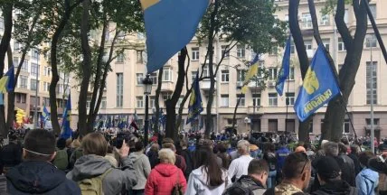 Как передаёт "Интерфакс-Украина", к зданию подошли около тысячи людей с национальной символикой и флагами политических партий "Национальный корпус", "Демократическая секира", ВО "Свобода" и общественной организации "Дело громад".