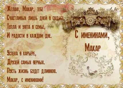Макар знает, к чему стремится. К своей цели он идет с упорством. Тем более что силы действовать продуктивно, мужчина черпает из уверенности в своей правоте. Макар имеет высокий интеллект и глубокий ум. Он хорошо все запоминает, но не любопытен. Знания из тех областей, которые Макар не считает своим предназначением, Макар попросту игнорирует. К тому же этот мужчина совершенно бескорыстен. Макар будет иметь успех во многих сферах. Он может стать и педагогом, и музыкантом, и инженером, и каменщиком.