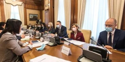Руководитель Офиса президента Украины Андрей Ермак вместе с супругой президента Украины Еленой Зеленской, премьер-министром Денисом Шмыгалем, министром соцполитики Мариной Лазебной и омбудсменом Людмилой Денисовой провели встречу с представителями правозащитных организаций, посвященную усилению мер по предотвращению и противодействию домашнему насилию.