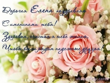 С Днём ангела, милая, очаровательная, прекрасная Елена. Пусть твой хранитель бережёт тебя от бед и хворей, пусть у твоего ангела будут невероятно большие крылья, которые всегда укроют тебя от зависти и печали. Желаю тебе, Леночка, всегда оставаться сильной, волевой, смелой, доброй, воодушевлённой, искренней, любящей, любимой и достойной счастья!