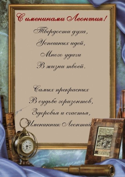 Леонтий, сегодня, в день твоего имени, я хочу поблагодарить тебя, нашего неизменного лидера, за простые человеческие качества, присущие тебе. Ты мудр и прост, ты знаешь самый короткий путь к успеху. Ты всегда готов подставить плечо поддержки, помочь в трудную минуту. Каждый человек, оказавшийся рядом с тобой, благодарит судьбу за такой подарок! Удачи тебе, наш начальник и друг!