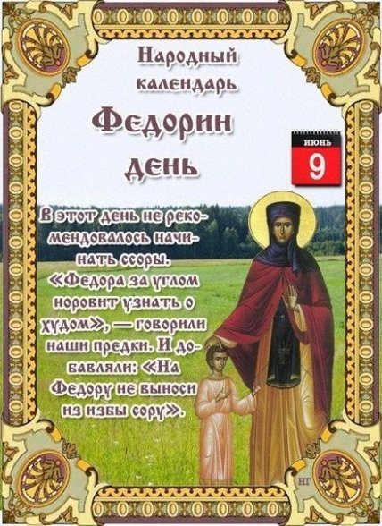 На Киевской Руси Федору (Феодору) называли "колючей на язык". Крестьяне в этот день запрещали бабам и девицам болтать друг с другом, чтобы не накликать беду. Люди были уверены, что сплетня или слух, пущенные в этот день, обойдут всю деревню, и все её жители узнают, что творится в семье.