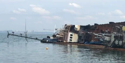 Госэкоинспекция отобрала пробы морской воды у танкера "Делфи", затонувшего в районе одесского пляжа "Дельфин" 22 ноября 2019 года, и обнаружила, что нормативы предельно допустимой концентрации нефтепродуктов превышен в 16,4 раза.