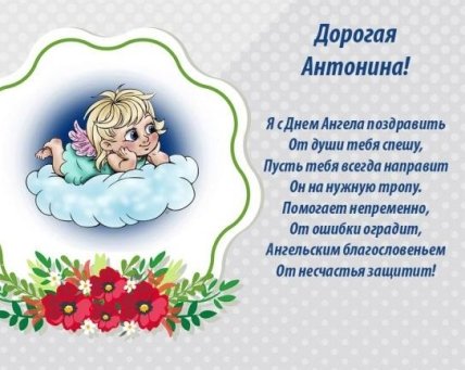 Прелестная девушка по имени Антонина, прошу принять поздравления в честь твоего праздника. Желаю искорок счастья и пламени любви, водопада сбыточных желаний и озера светлых надежд, дождя удачи и везения, яркого солнечного настроения.