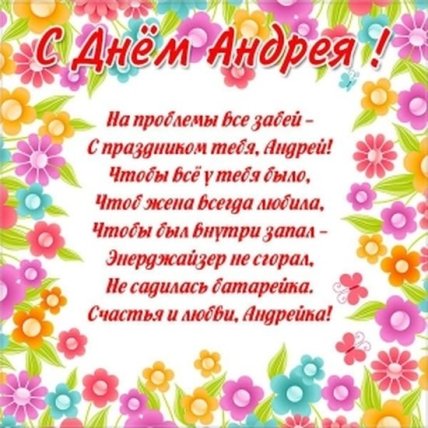 Дорогой Андрей, поздравляю тебя. Хочу пожелать лихо и умело справляться с любой проблемой, устраняя любые препятствия на пути к своей цели и наполняя свою жизнь моментами счастья и веселья. Пусть планы никогда не рушатся, пусть надежды всегда оправдываются.