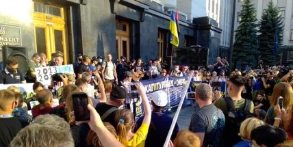 В центре столицы 27 июля прошла акция протеста против договоренностей о прекращении огня, которые уже были нарушены российскими наемниками.