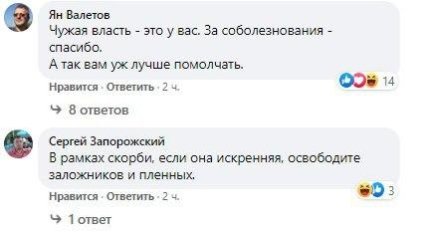 Впрочем, в комментариях к посту украинцы напомнили о "братских" отношениях россиян к украинцам, вспомнив расстрел колонны войск в "зеленом коридоре" под Иловайском, вторжение войск РФ в Украину и котел в Дебальцево, а также многое другое.