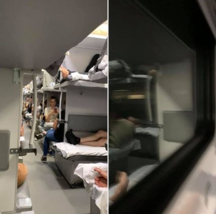 Кроме того, в поезде должен действовать строгий масочный режим, но как только все расселись по своим местам, так сразу же "демаскировались".