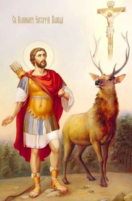 3 октября православная церковь почитает память великомученика Евстафия Плакиды, его жены Феопистии и детей Агапия и Феописта. Их жизнь и страдания были хорошо известны на Руси. Евстафий был выдающимся римским полководцем. Он жил во времена правления императора Траяна (98-117), до крещения носил имя Плакида.