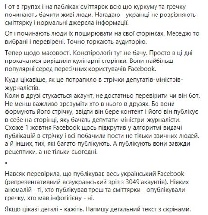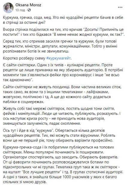 Блогер Оксана Мороз подробно объяснила, откуда в ленте Facebook появились посты про гречку.