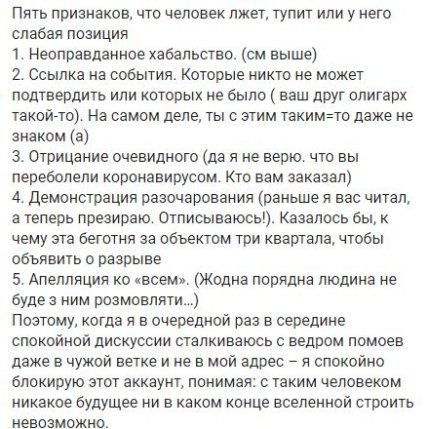 Наталья Влащенко, которая является украинским театроведом, сценаристом, издателем, а также телеведущей и продюсером на телеканале "Украина 24", назвала пять признаков того, что во время разговора человек лжет, тупит или у него слабая позиция.