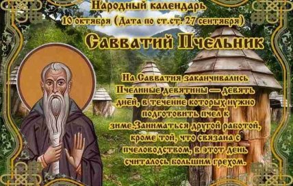 В субботу, 10 октября 2020 года православная церковь чтит память преподобного Савватия Соловецкого. В этот день заканчивалась пчелиная девятина, продолжавшаяся со 2 октября.