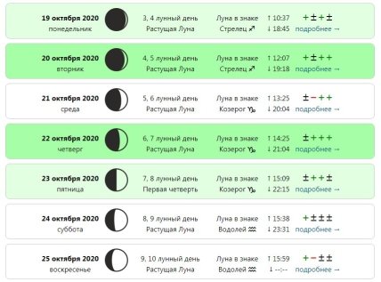 Неблагоприятные лунные дни на следующей недели: 23 октября.