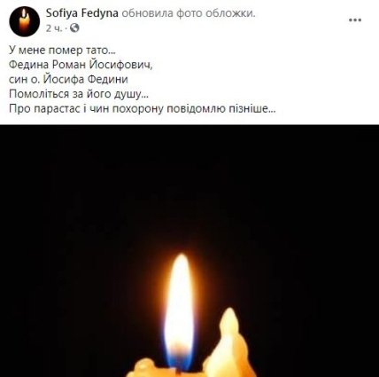 "У меня умер папа ... Федина Роман Иосифович, сын о. Иосифа Федыны. Помолитесь за его душу ... О парастасе и чин погребения сообщу позже", - написала Федина.