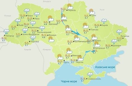 Температура ночью +3-+8 °, в Карпатах 0-+3 ° тепла; днем +8-+14 °.