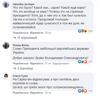 Некоторые поддержали президента: "Все очень правильно написано, такой ответ мог дать действительно политик, который является патриотом своей страны.", "Выступление Президента крупнейшей европейской державы Украина. Хорошо сказано. Браво Владимир Александрович!".