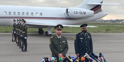 Его самолет приземлился в аэропорту "Жуляны", и фото и видео с места событий активно постят в сети.