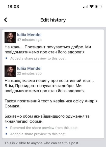 Мендель опозорилась с постом про "ковид" у Зеленского