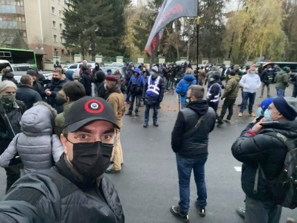 Возле больницы "Феофания", где лечится от COVID-19 президент Украины Владимир Зеленский, проходит митинг сторонников Движения сопротивления капитуляции.