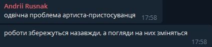 Один из комментатор отметил, что после начала агрессии РФ против Украины тематика изменилась, показав одну из последних работ художника.