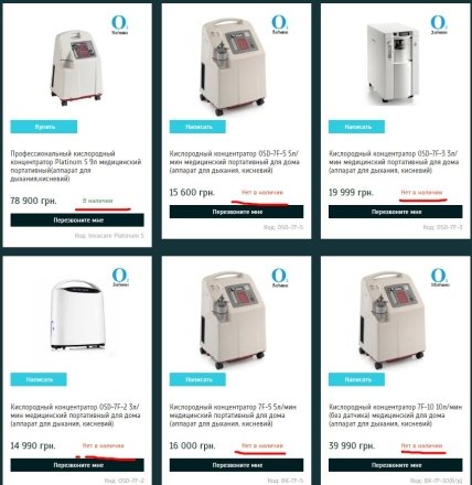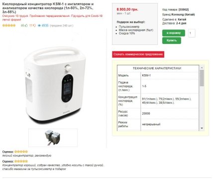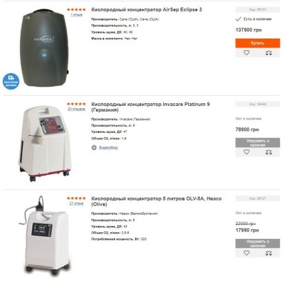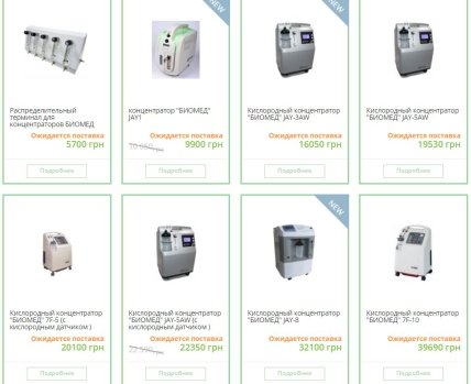 На сайте "Медтехники" кислородные концентраторы предлагают по цене от $1000 до $8000 (28-226 тысяч гривен).